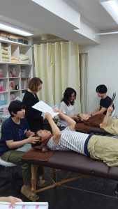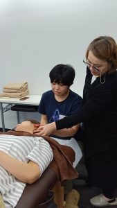 ③ 相モデル実習:受講生同士で施術を実践し、圧の強さや手の位置を細かく確認